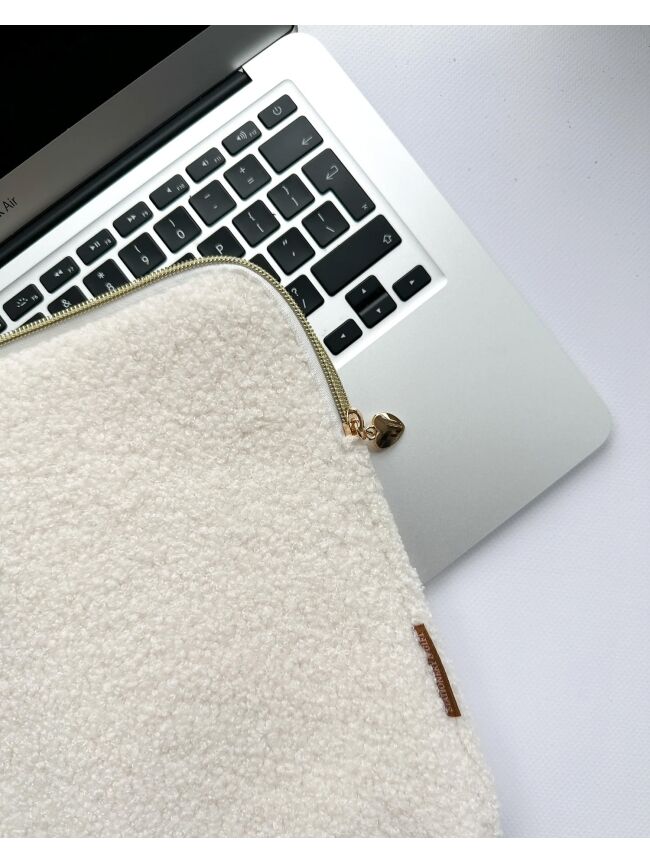 Hoe tof zijn de nieuwe laptop hoezen! Prachtig in Teddy stof met aan de binnenkant een zachte velours-achtige stof die je laptop mooi beschermt. Aan de rits zit uiteraard een gouden hartje.