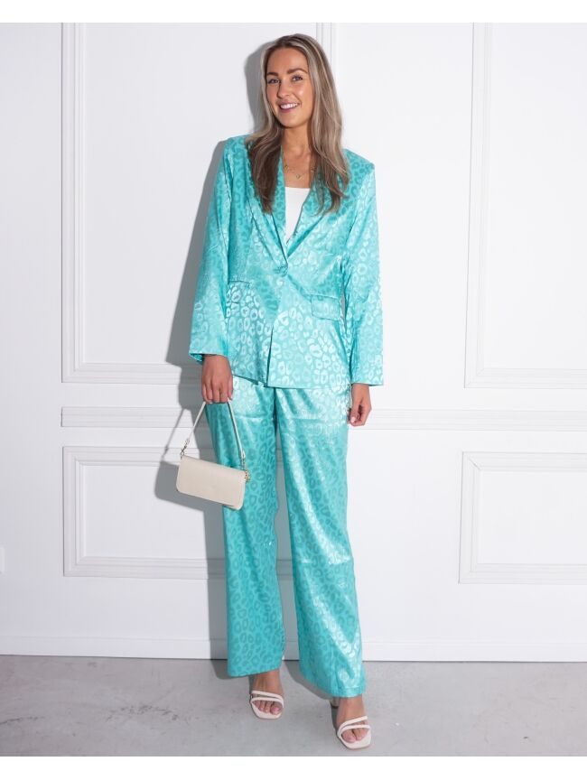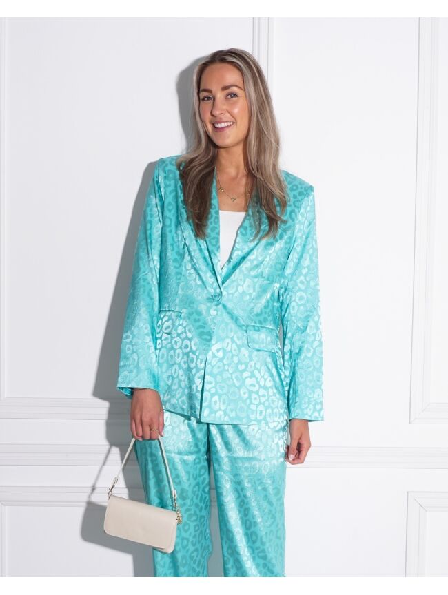 De Sammy blazer heeft een mooie aqua kleur en geeft een oversized look aan je outfit met een knoop aan de voorzijde. The power of matching sets: Combineer met de Anna pants - Leopard voor een complete look!