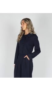 Het Snow Jacket is een getailleerd model en valt wat korter. Het Jacket heeft twee borstzakken en een knoopsluiting aan de voorkant. In de schouders zit een beetje schoudervulling, hierdoor heeft het Snow Jacket een stoere look.