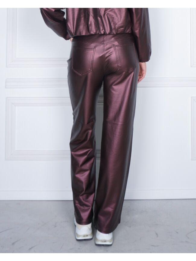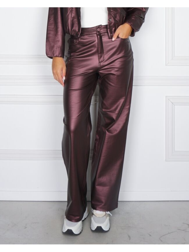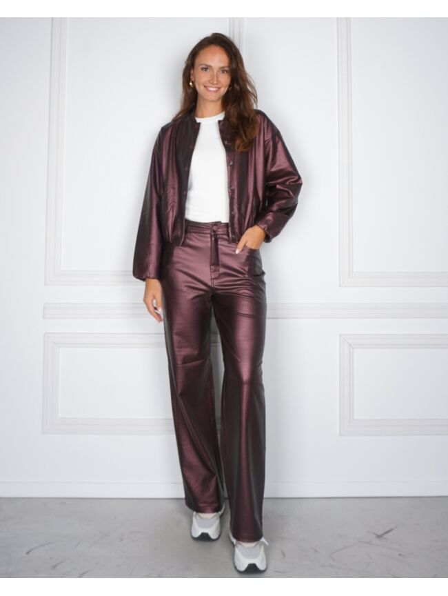 De Harper broek valt hoog in de taille. Gemaakt van een mooi bruin glanzend materiaal. De broek heeft een ritssluiting, steekzakken en riemlussen. De pijpen lopen recht tot wijd uit. Combineer met het Isabella Jacket voor een complete look.
