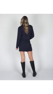 Skort Queen kan je perfect matchen met jasje Snow. Gemaakt van een zachte, donkerblauwe stof. Sluit met een rits aan de zijkant en heeft te leuke strikdetails.