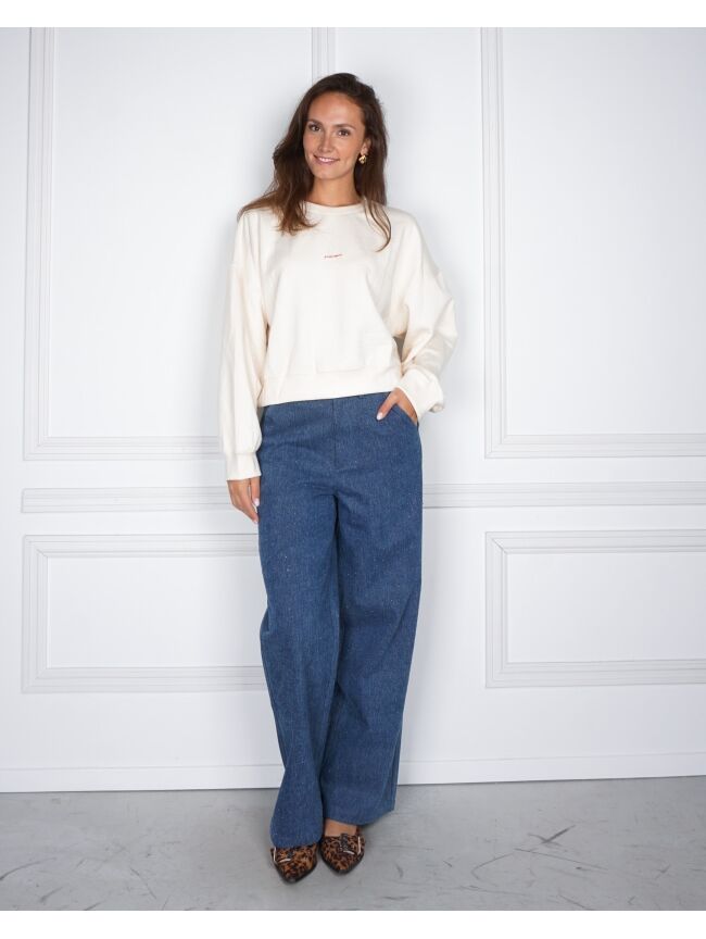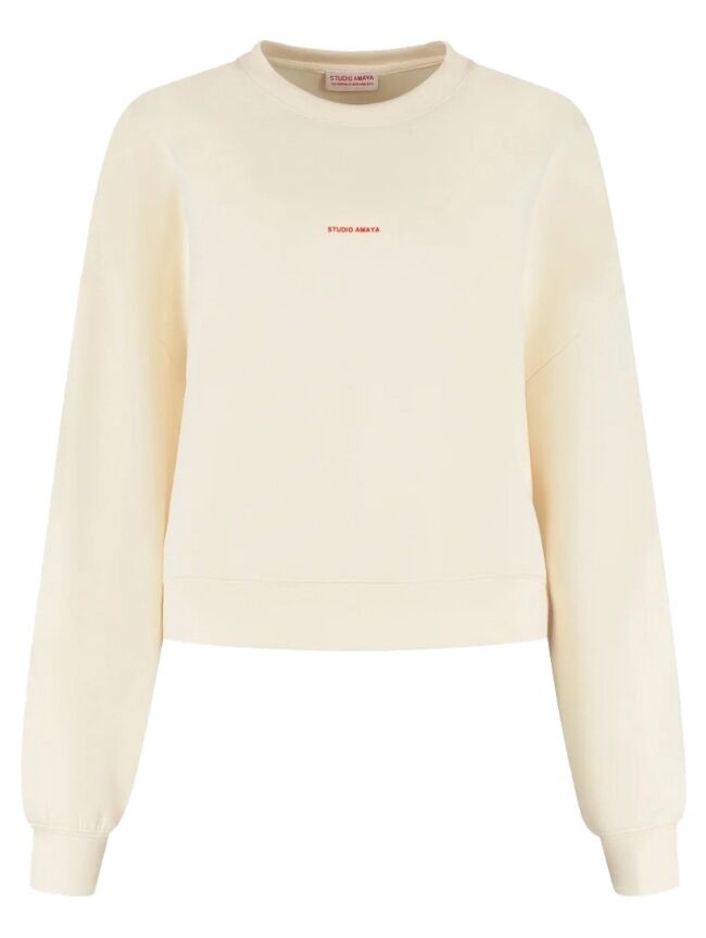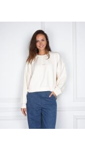 De Betsie sweater van Studio Amaya is een tijdloze basic met een moderne twist. De off-white kleur geeft een frisse, cleane uitstraling, terwijl de subtiele logoprint op de borst zorgt voor een minimalistisch accent.