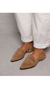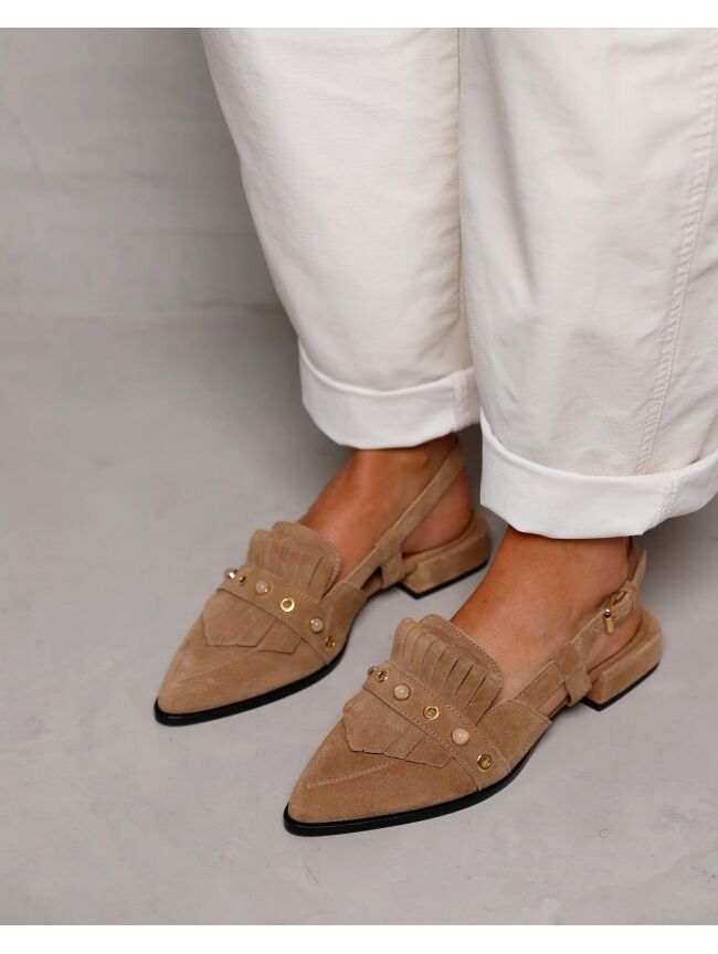Vrouwelijk, classy en stoer: Jazz Tammi is alles in één! Gemaakt van hoogwaardig suède, heeft Jazz Tammi een luxueuze uitstraling die naadloos past bij elke outfit. De spitse neus geeft een sophisticated look, terwijl de franjes en sierstuds op de wreef zorgen voor nét dat beetje extra flair. Dankzij de open hiel en het verstelbare bandje trek jij de slingbacks ook nog eens in een handomdraai aan en uit.