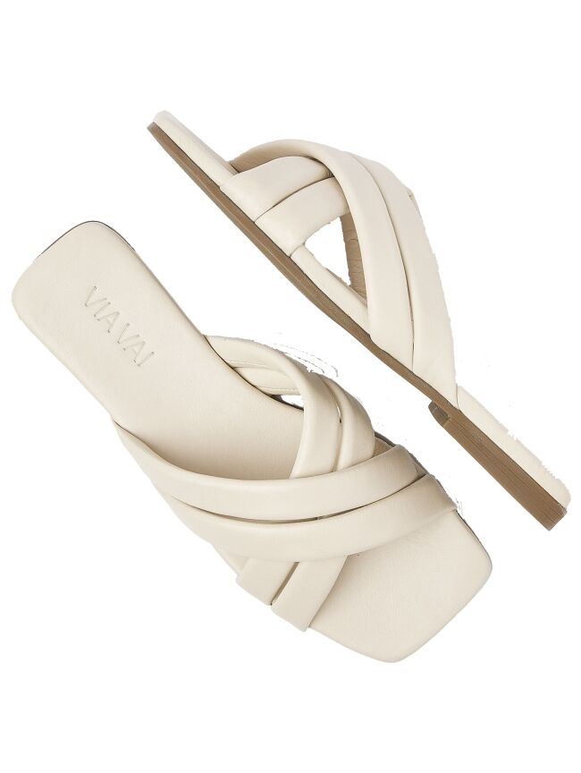 Statement slippers met een twist! Met de leren Kiki Lot slippers steel jij de show wherever you go. De brede, gekruiste band in beige leer geven een speelse, maar toch chique touch. De vierkante neus en het subtiele blokhakje zorgen voor een classy look met een stijlvol randje. Een perfecte mix van casual, trendy en sophisticated.