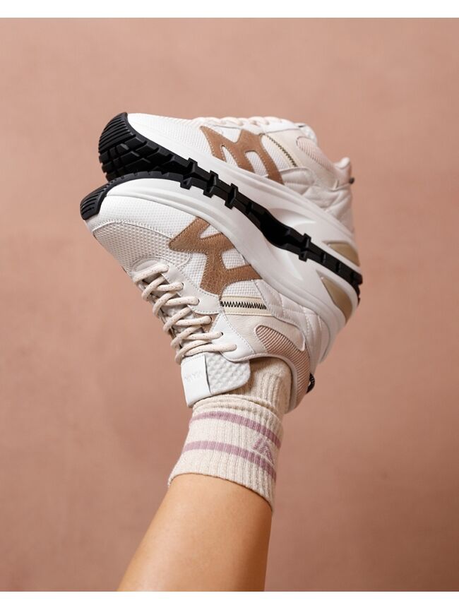 Let’s mix and match. Liz Finley bestaat uit een mix van verschillende kleuren en materialen, waarmee jij wat extra flair toevoegt aan je outfit. De speelse detaillering op de zijkant geeft de meerkleurige sneakers een eigenwijze touch. Deze sneakers met chunky zool zorgen er niet alleen voor dat jij er fabulous uitziet, maar ook nog eens op wolkjes loopt.