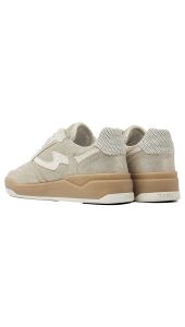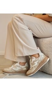 Retro vibes all-over! Deze beige sneakers met glitter details hebben een sportieve look & feel. Dat zie je onder andere aan de perforaties op de neus en dynamische belijningen. De combinatie van verschillende materialen en texturen geeft Sam Levi een zacht randje met een vrouwelijke touch. Eén blik op deze sneakers en jouw schoenenhart gaat sneller kloppen!