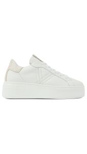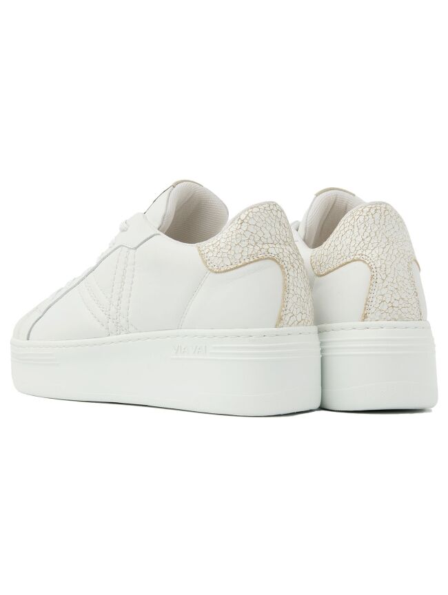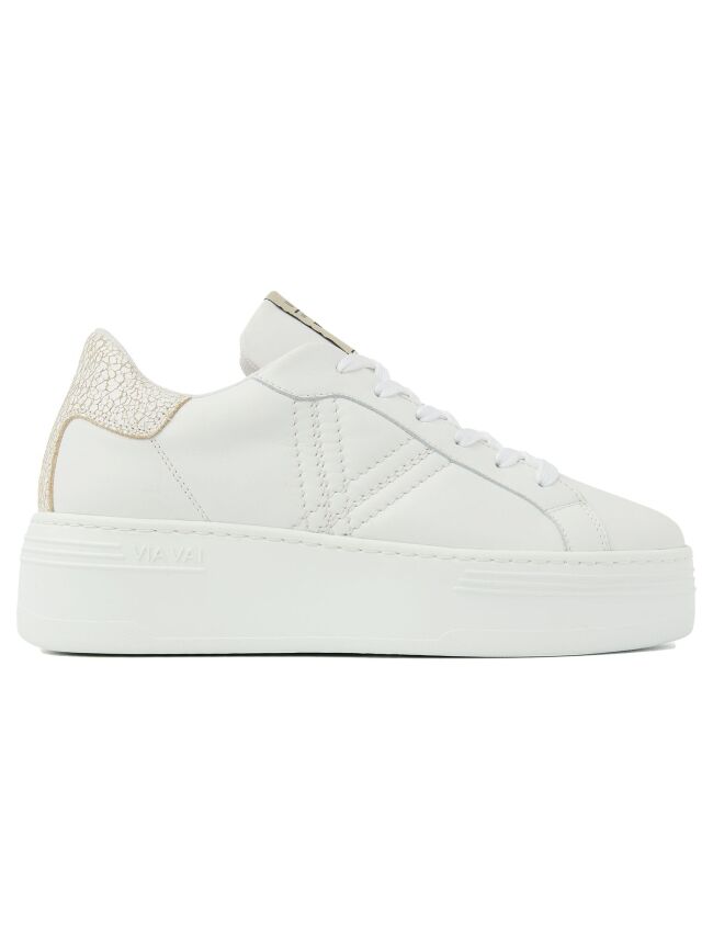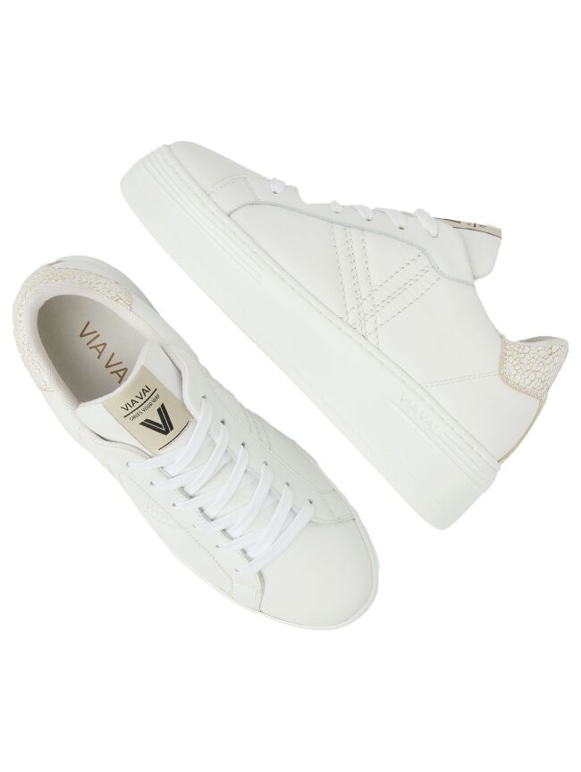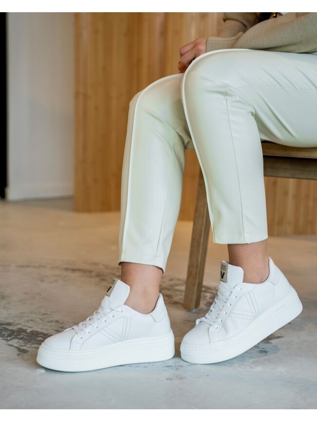 Level up met Isa Layne. Deze platform sneakers hebben een clean en minimalistisch design, maar ook over details is nagedacht. Zo vormen de stiksels op de zijkant een dubbele ‘V’ en is het hielstuk afgewerkt met craquelé leer. Het belangrijkste detail is uiteraard de stoere plateauzool, die ook nog eens lichtgewicht is.