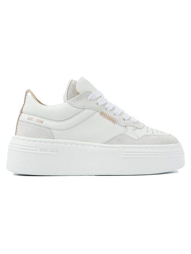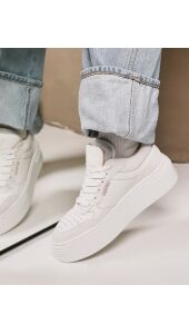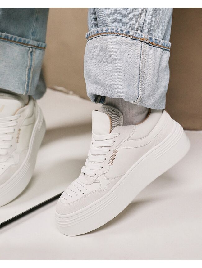 Elevate your look met Isa Cecile. Deze witte platformsneakers zijn de ultieme musthave voor de fashionista die houdt van stijl en comfort. De platformzool is extreem lichtgewicht, waardoor je er zo op wegloopt. Unieke details, zoals de dubbele tong en handgemaakte stiksels, maken de trendy look van deze sneakers compleet.