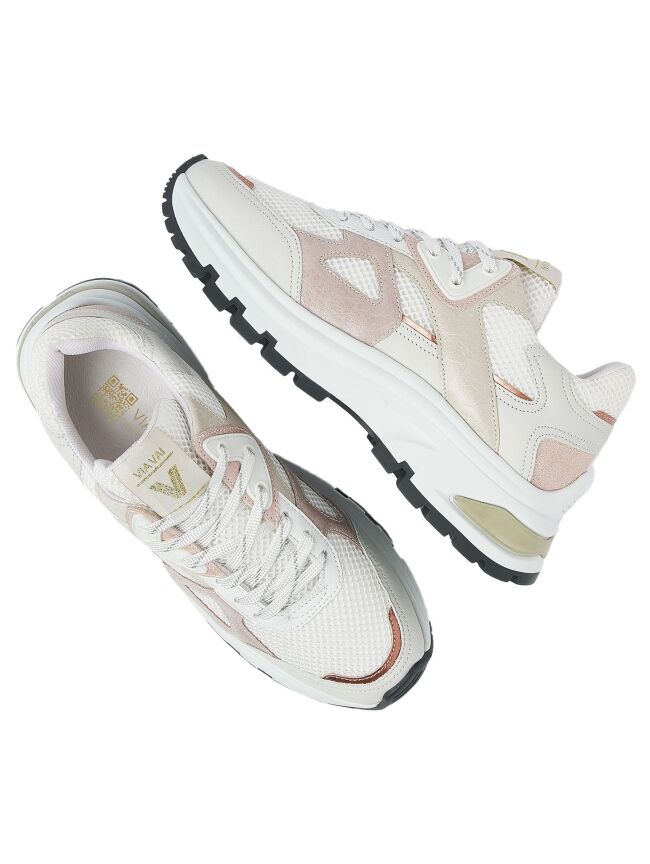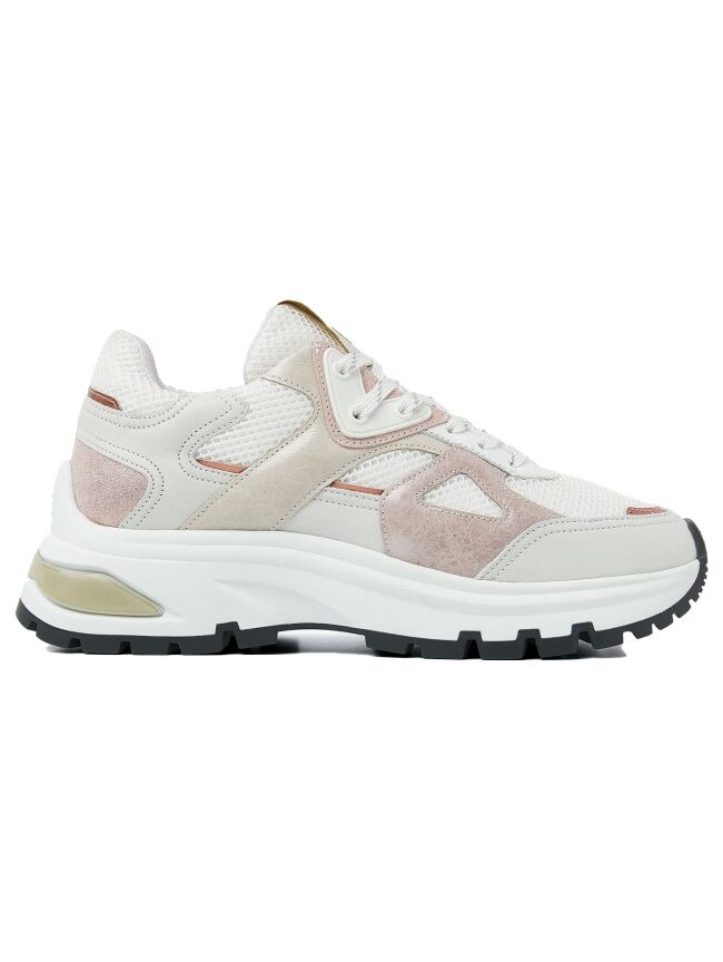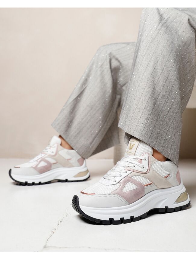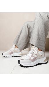 Hi Liz Sila! De algehele look & feel van deze sneakers kunnen we het beste omschrijven als chunky en sporty. Door het hoogwaardige mesh dat zowel aan de buitenkant als in de binnenvoering is verwerkt, hebben de meerkleurige sneakers een sportieve look en comfortabele fit. De combinatie met leren kleuraccenten zorgt voor een trendy en eigentijdse uitstraling. Your everyday essential, elevated.