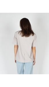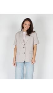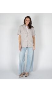 Deze grijze oversized blazer is gemaakt van een gladgeweven stof. Het ontwerp heeft korte mouwen, een klassieke reverskraag en een dubbele knoopsluiting. De klepzakken en het borstzakje zorgen voor een stijlvolle en moderne uitstraling. Ideaal voor een luchtige, elegante look.