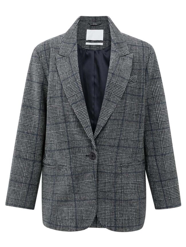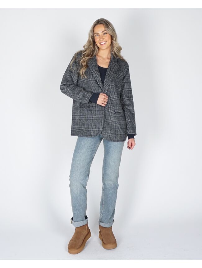 Deze oversized blazer met ruitpatroon is een stijlvolle en tijdloze toevoeging aan je garderobe. Dankzij de losse pasvorm zit hij heerlijk comfortabel, terwijl de klassieke knoopsluiting en het ruitdessin zorgen voor een elegante, stoere look. Perfect te dragen over een basic top of trui voor een effortlessly chic outfit, zowel casual als zakelijk inzetbaar.