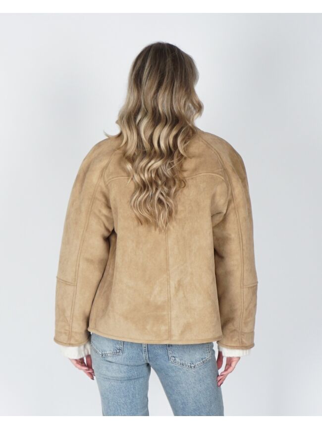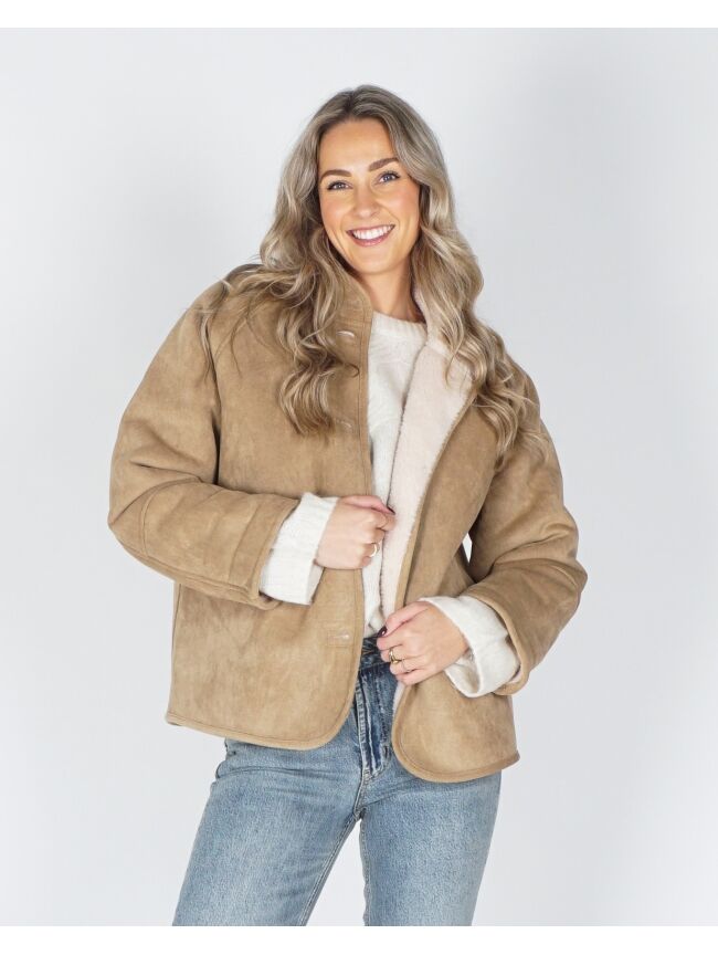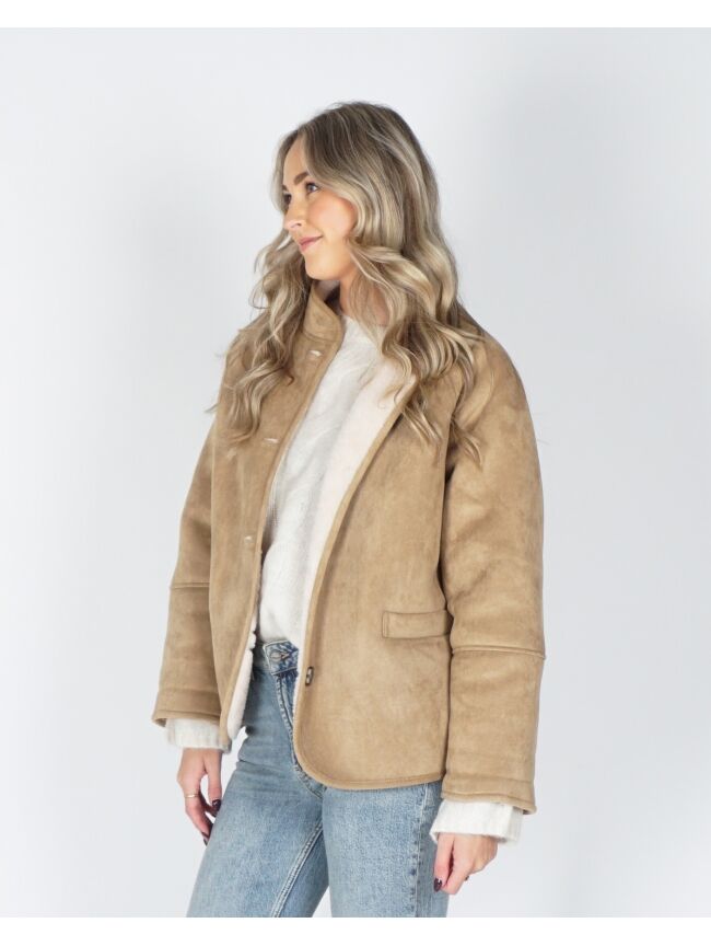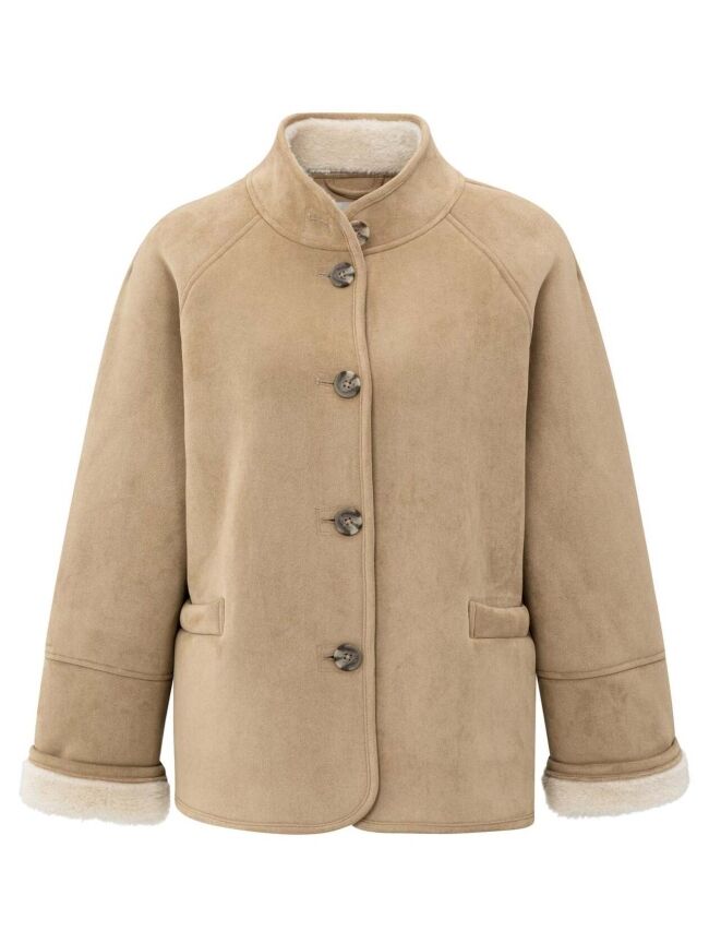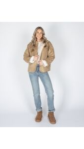 Deze oversized lammy jas is de perfecte mix van warmte en stijl. De zachte binnenkant voelt heerlijk comfortabel aan, terwijl de raglanmouwen zorgen voor een ontspannen, nonchalante pasvorm. Het oversized model geeft je look een trendy, cozy uitstraling, ideaal voor koude dagen met een modieuze twist.