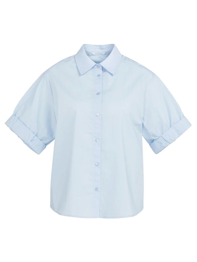 BLOUSE MET OMGESLAGEN MOUWEN LICHT BLAUW