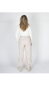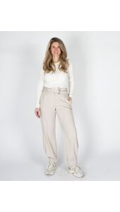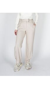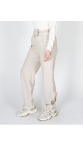LOSSE BROEK MET DUBBELE RIEM EN KNOOPDETAIL BEIGE