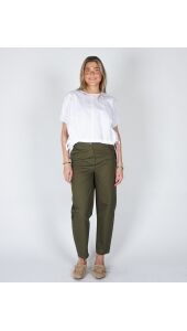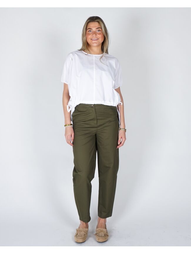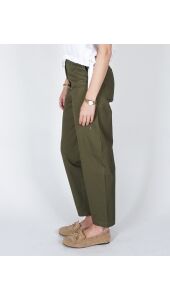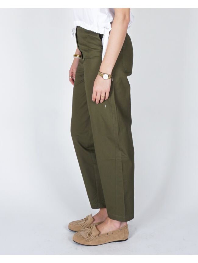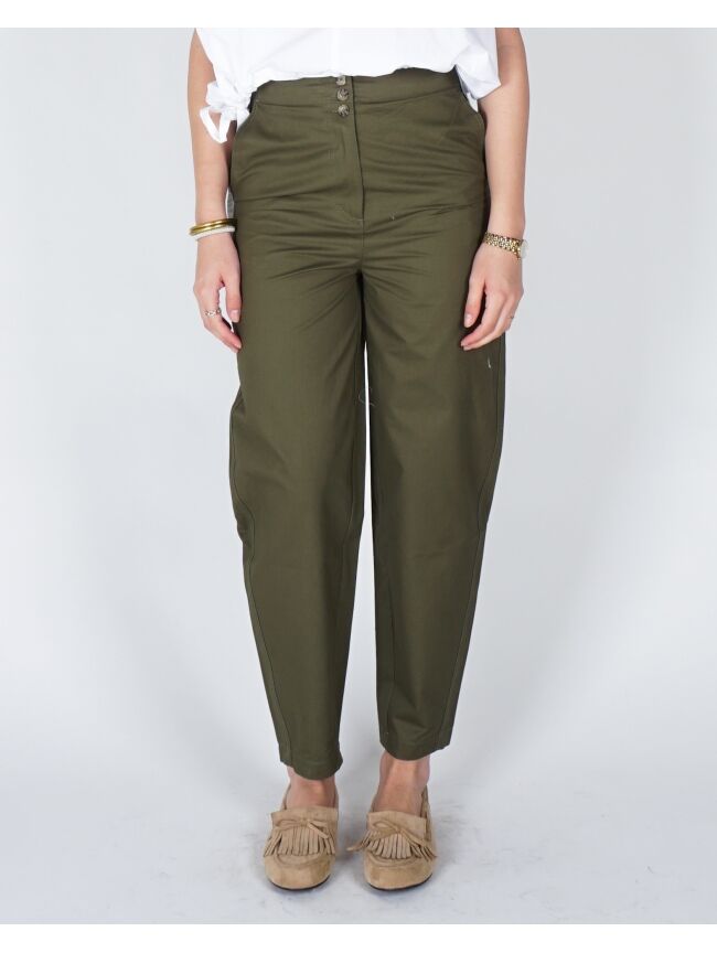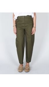 BARREL BROEK MET HOGE TAILLE EN KNOOPDETAIL GROEN