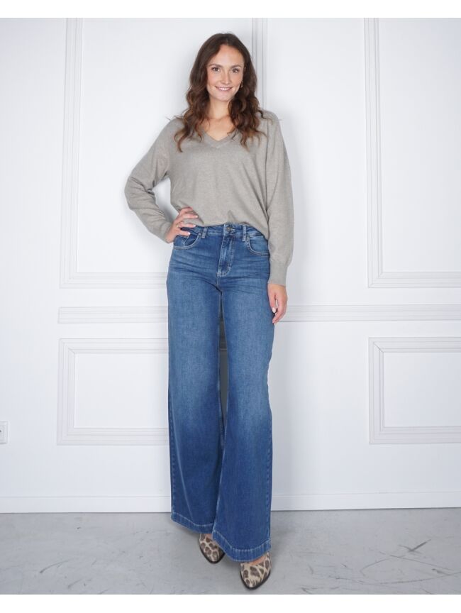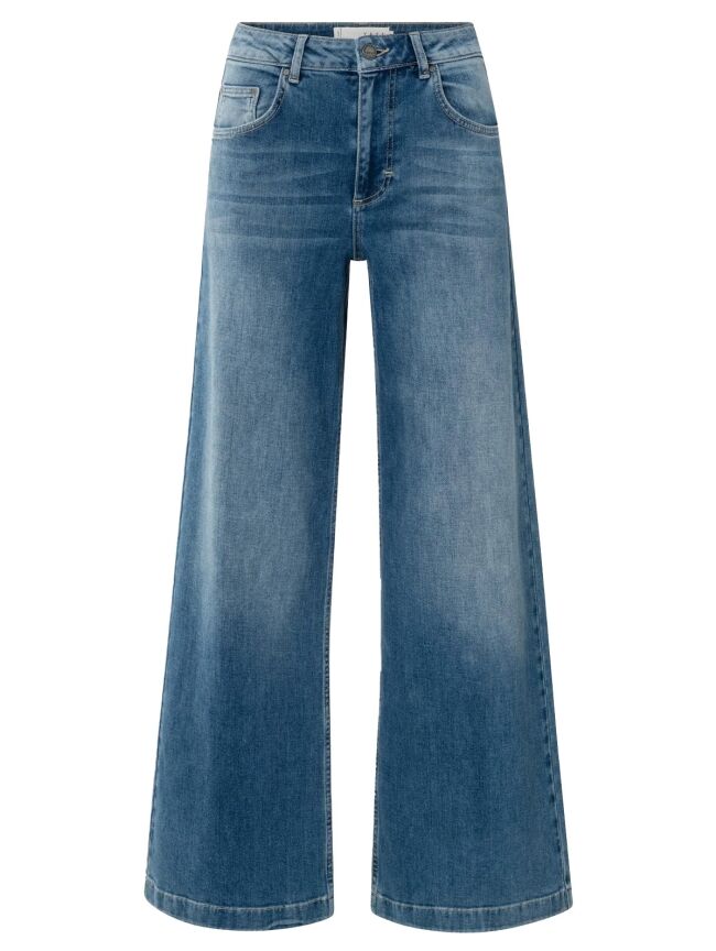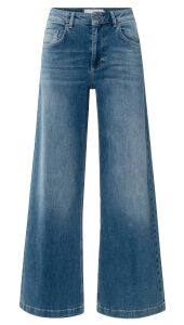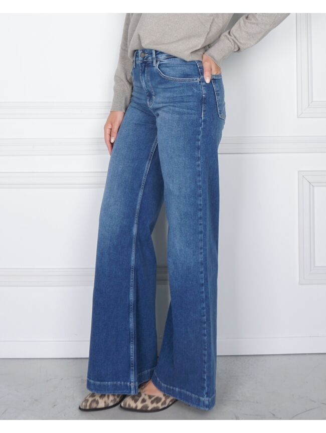 Deze comfortabele jeans is ontworpen met een hoge taille en een losse pasvorm met wijde pijpen. Het stevige denim zorgt voor een stoere look, terwijl de vijf zakken en klassieke wassing het item tijdloos maken. Perfect te combineren met zowel casual tops als nette blouses.