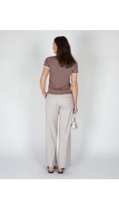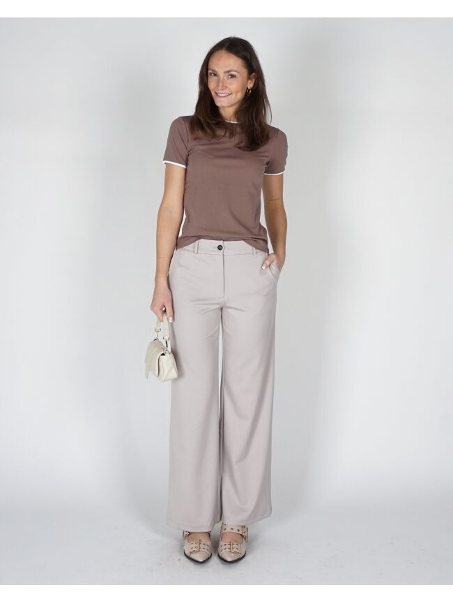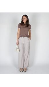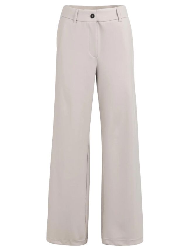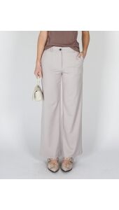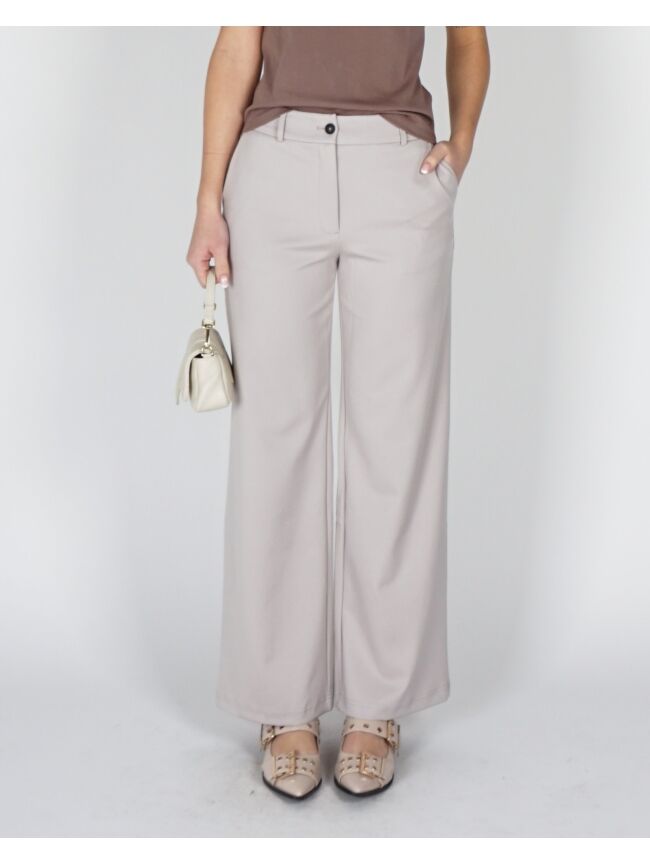 Deze comfortabele jersey pantalon heeft een elegante, wijde pasvorm en een hoge taille met elastische band. De soepele stof zorgt voor een ontspannen fit, terwijl de steekzakken en paspelzak achter functioneel zijn. Perfect te combineren voor een casual of chique look.