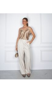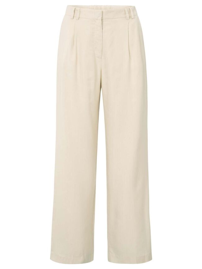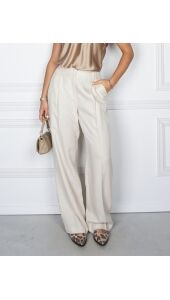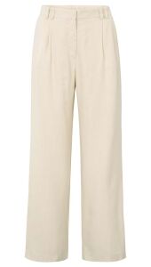 Deze elegante broek is gemaakt van een luchtige linnenmix en heeft een losse pasvorm met wijde pijpen voor een stijlvolle uitstraling. Het ontwerp is voorzien van een hoge taille, plooidetails aan de voorkant en praktische steekzakken. Perfect te combineren met een blouse of top voor een chique en comfortabele look.