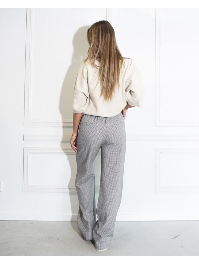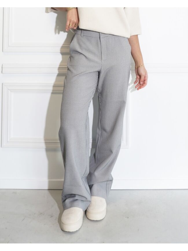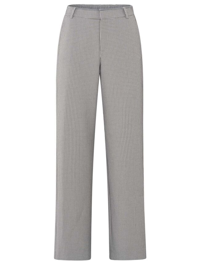 Deze stijlvolle pantalon is gemaakt van een geweven stof met een subtiel ruitpatroon. De wijde pijpen en de normale taille zorgen voor een moderne uitstraling. Voorzien van riemlussen en steekzakken is deze broek niet alleen elegant, maar ook comfortabel. Combineer met een blouse of trui voor een chique en tijdloze look.