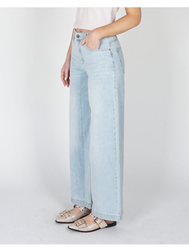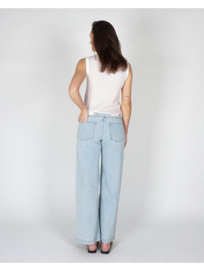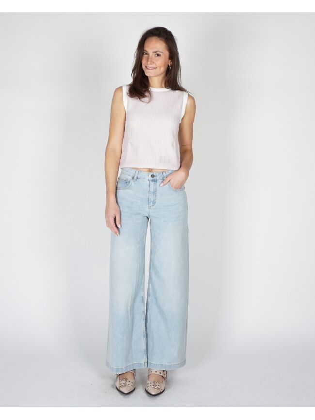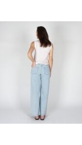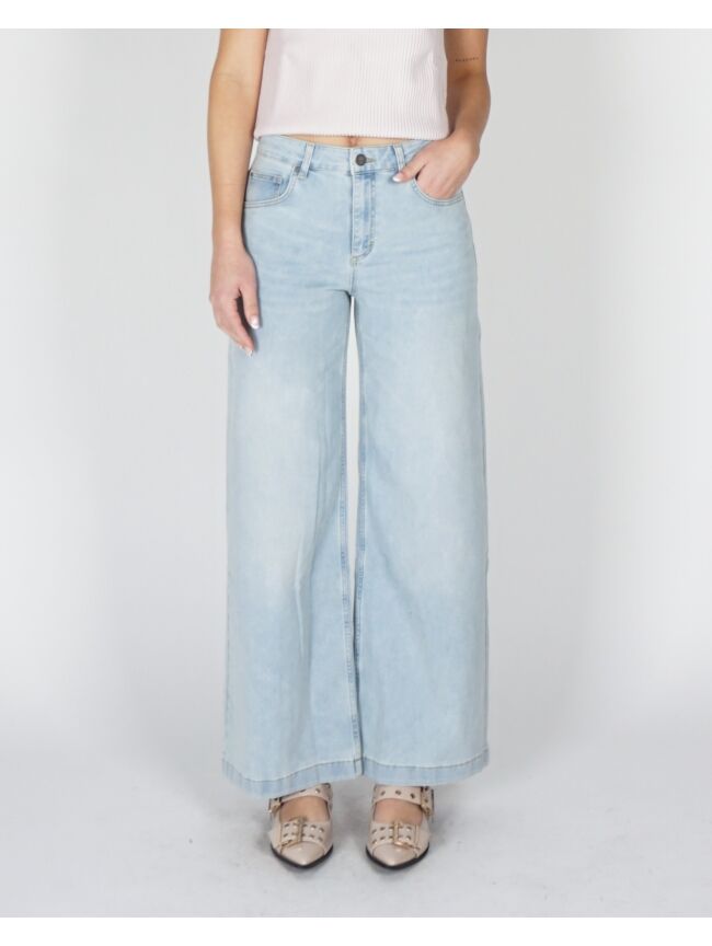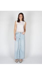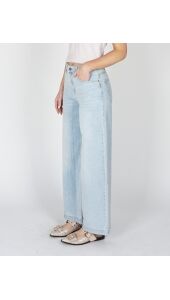 Deze jeans is ontworpen met een hoge taille, een losse pasvorm en extra wijde pijpen voor een moderne uitstraling. Gemaakt van zacht katoendenim en voorzien van klassieke steekzakken en achterzakken. De lichte wassing geeft een frisse, casual uitstraling. Perfect voor een comfortabele en stijlvolle outfit.