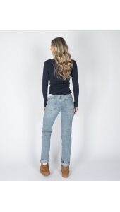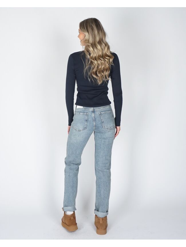 Deze straight fit jeans in lengtemaat 32 in klassiek blauw is een echte wardrobe essential. Met zijn rechte pijpen en comfortabele mid-rise pasvorm is deze jeans perfect voor elke dag. De tijdloze wassing maakt hem makkelijk te combineren, van casual met sneakers tot chic met een blazer en hakken.
