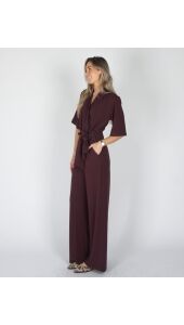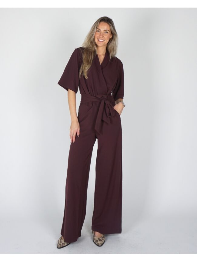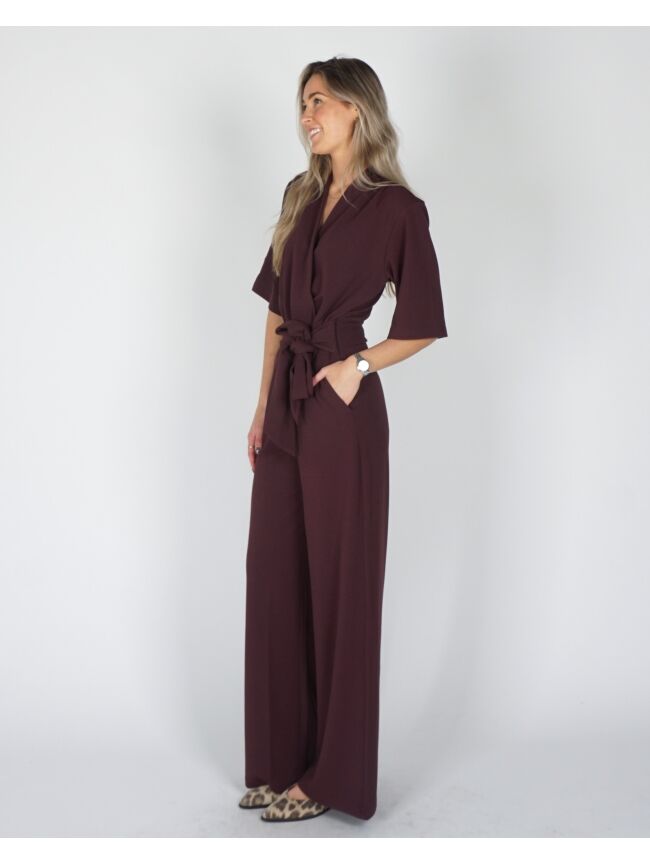 JUMPSUIT MET STRIKCEINTUUR BORDEAUX