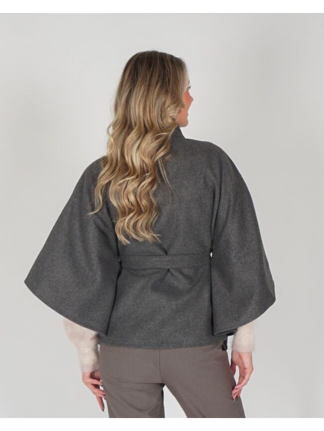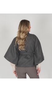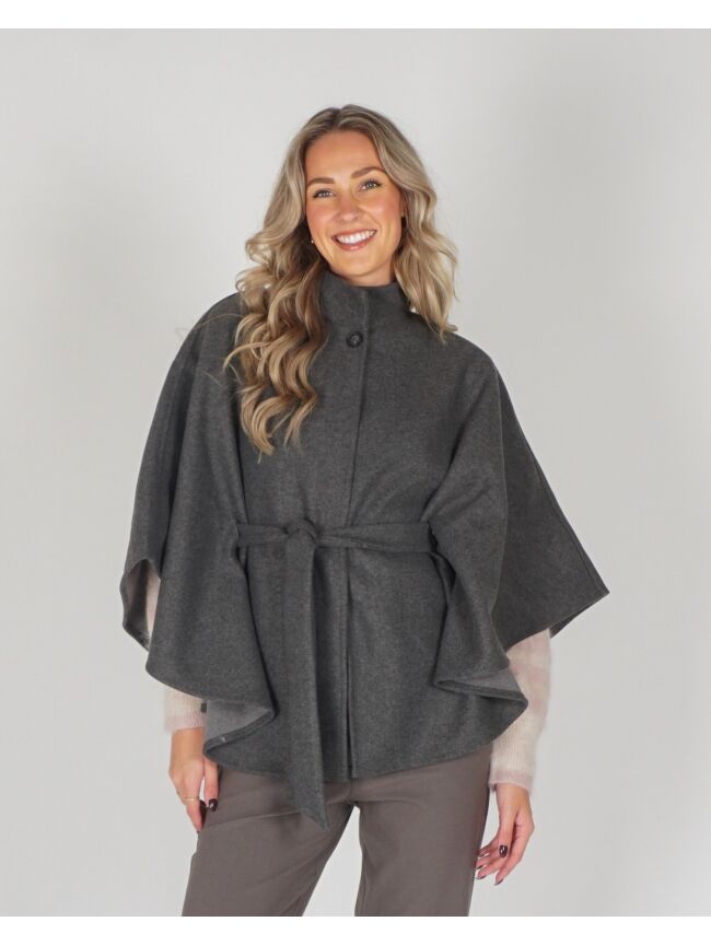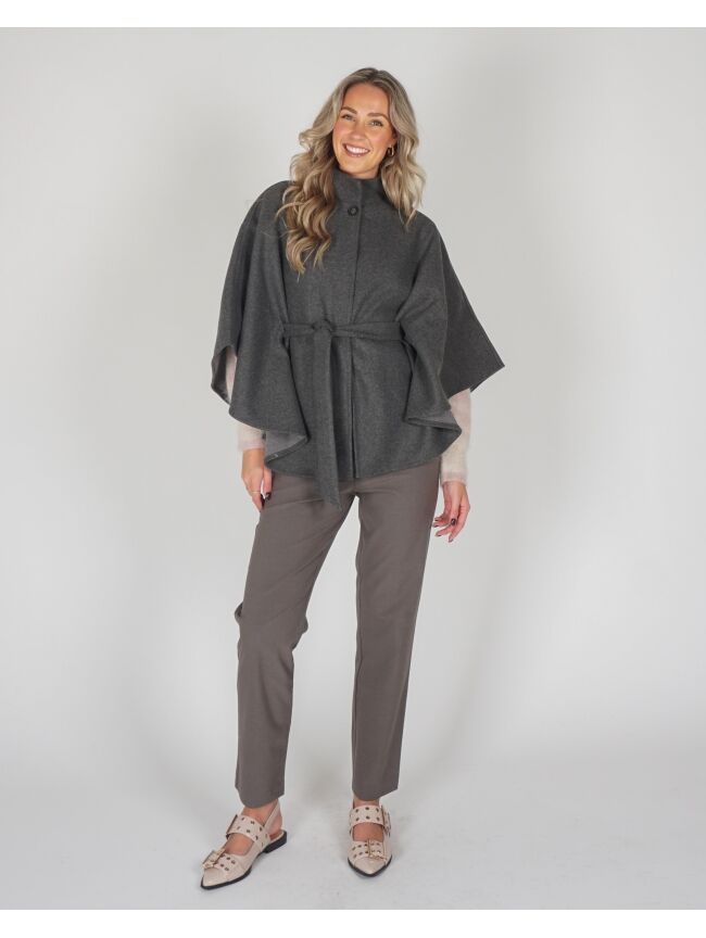 Deze stijlvolle cape jas heeft een losvallend silhouet en combineert elegantie met draagcomfort. Je kunt de jas sluiten met een decoratieve knoop en een bijpassende tailleband, waarmee je de pasvorm subtiel accentueert. De wijde mouwen en soepele stof maken het de ideale jas voor een gelaagde, vrouwelijke look.