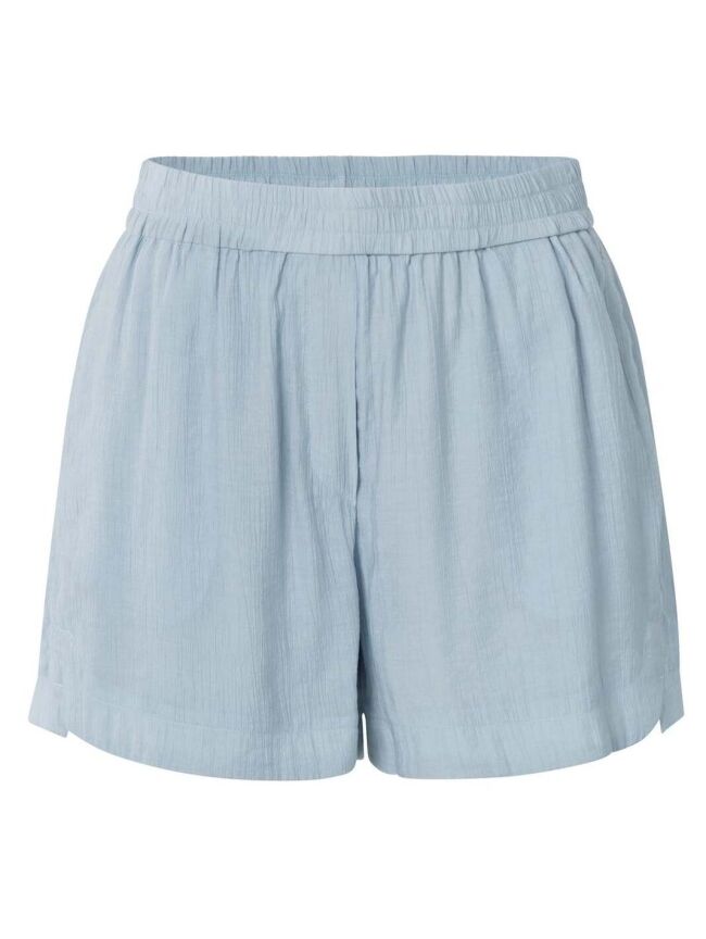 Deze short is vervaardigd uit een luchtige, geweven stof met een subtiele structuur en heeft een comfortabele elastische tailleband. De rechte pijpen en losse pasvorm zorgen voor een elegante, casual uitstraling. Voorzien van steekzakken en paspelzakken aan de achterzijde. Een veelzijdige toevoeging aan je zomergarderobe.