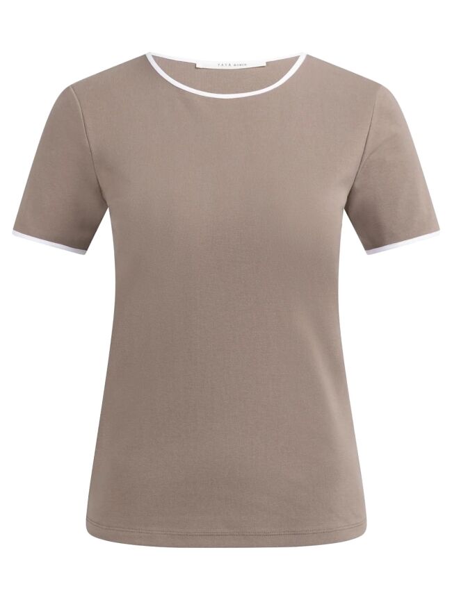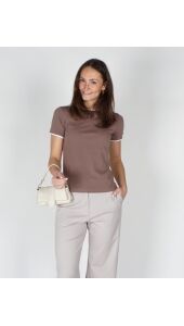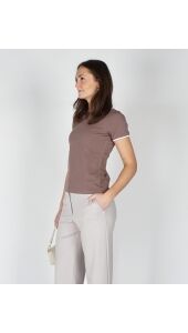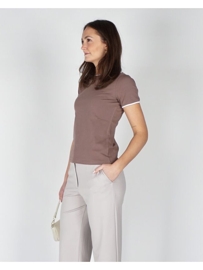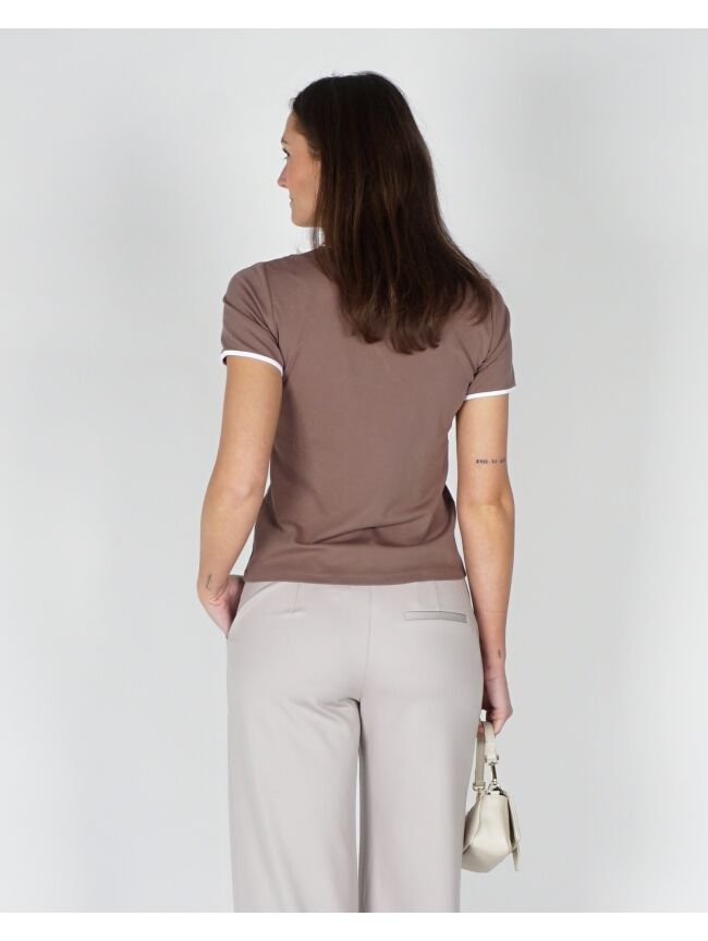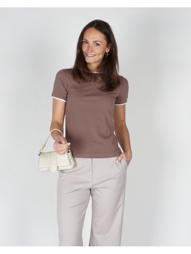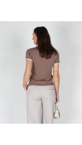 T-SHIRT MET CONTRASTERENDE BIES TAUPE