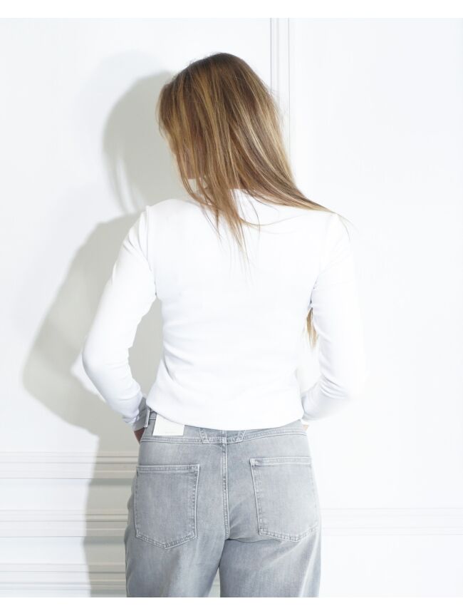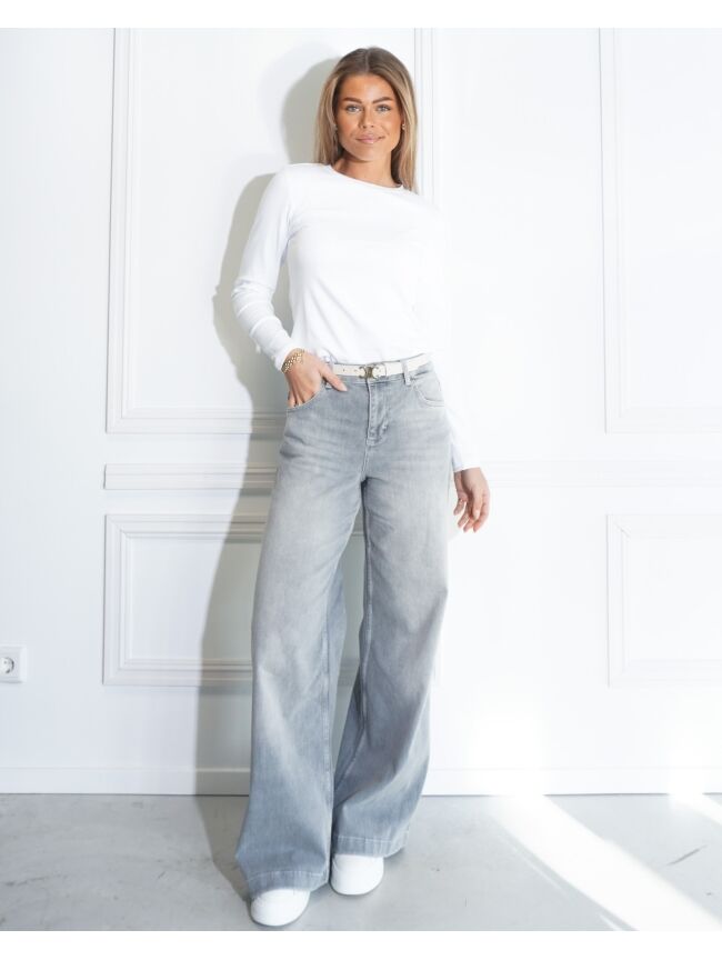 BASIC T-SHIRT MET LANGE MOUWEN WIT