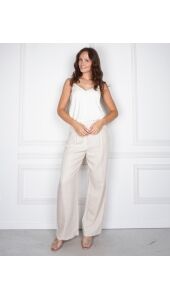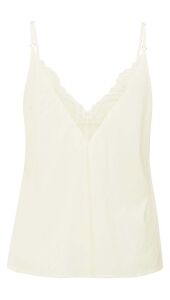 Deze elegante singlet is gemaakt van een luchtige stof en afgewerkt met verfijnd kant langs de diepe V-hals. Het model heeft verstelbare spaghettibandjes en een aansluitende pasvorm die soepel valt. Een elegant item dat perfect is om solo te dragen of als laagje onder een blouse of blazer.