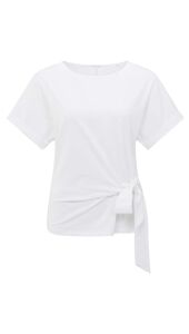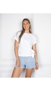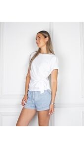 T-SHIRT MET RONDE HALS EN KNOOPDETAIL WIT