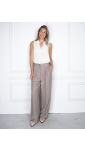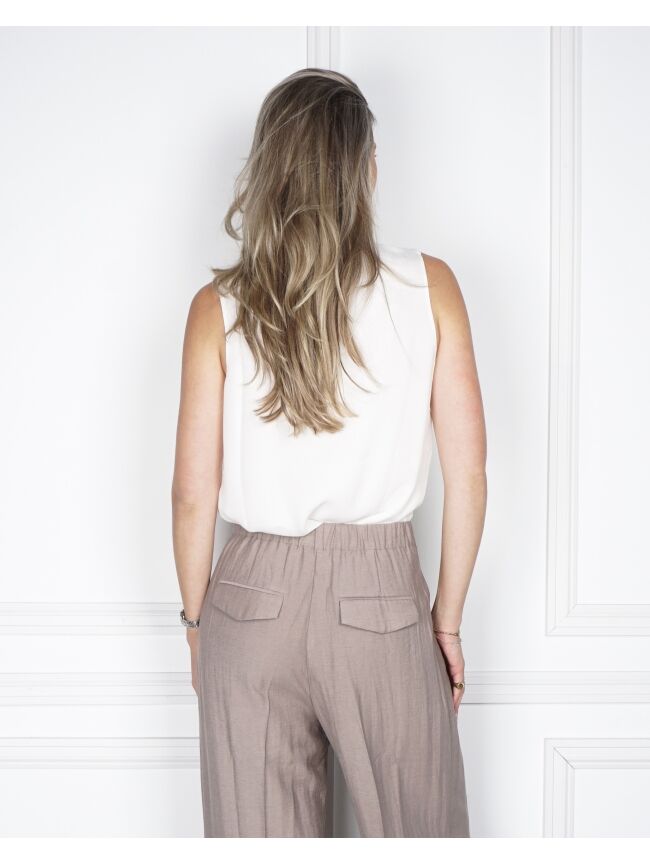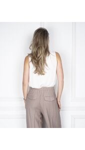 Deze verfijnde mouwloze top is gemaakt van een soepele, zachte stof en heeft een ronde hals met een geplooide opstaande kraag. De subtiele keyhole-opening met knoopsluiting voegt een elegant detail toe. De normale pasvorm zorgt voor een comfortabele uitstraling die eindeloos gecombineerd kan worden in zowel casual als geklede looks.