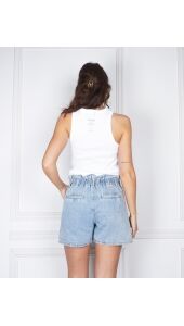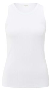 Dit ribgebreide singlet is gemaakt van een zachte katoenmix en heeft een aansluitende pasvorm. Het mouwloze ontwerp en de ronde hals geven een casual uitstraling. De subtiele tekstprint op de rug voegt een speels detail toe.
