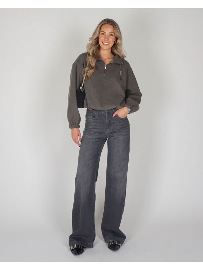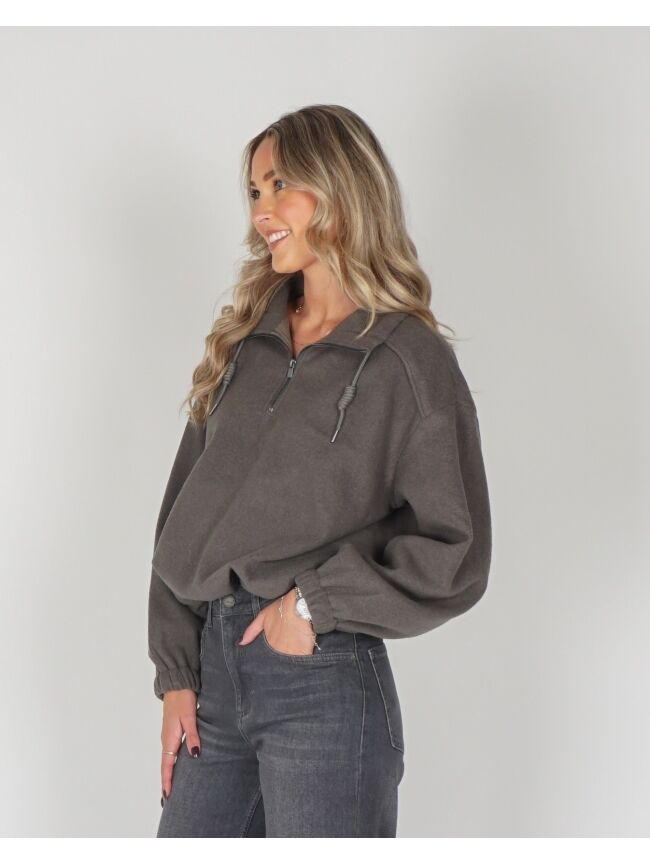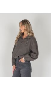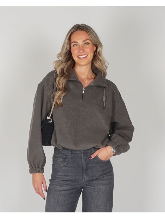 BALLOON SLEEVE MET ZIP DONKERGRIJS