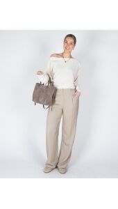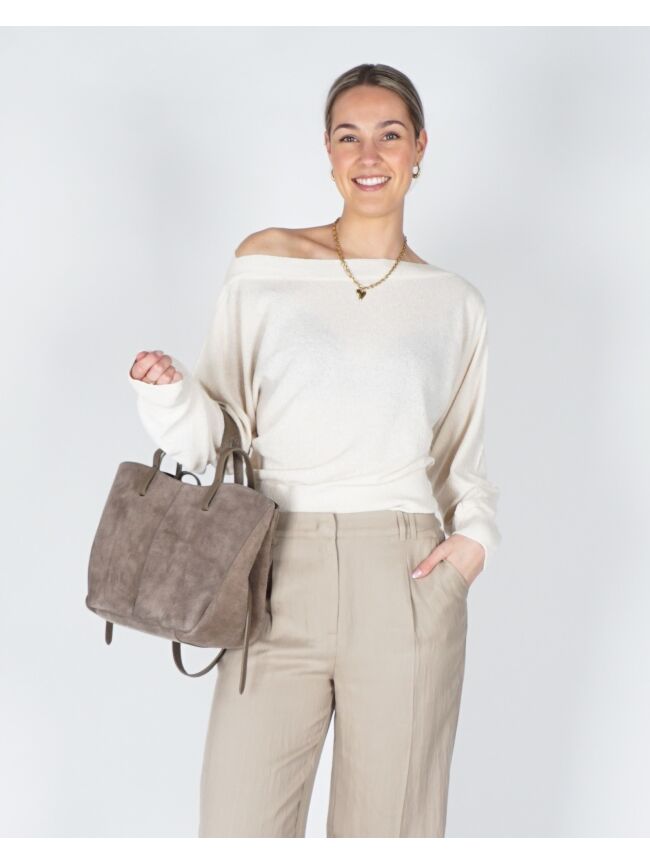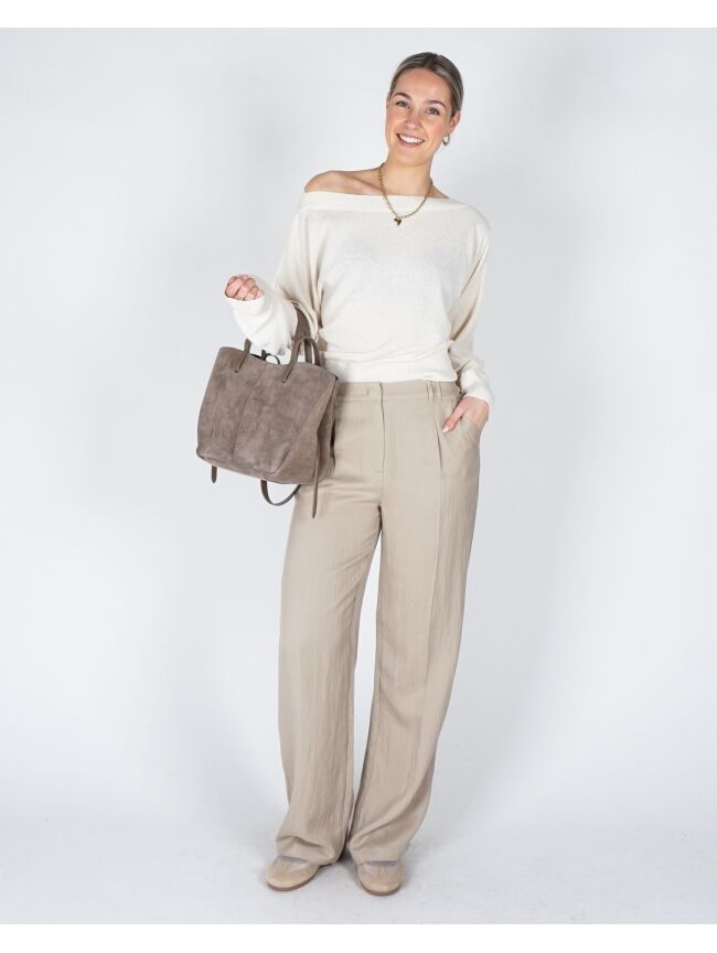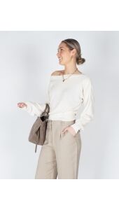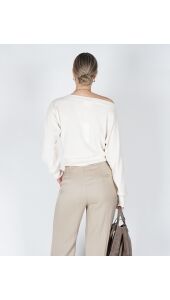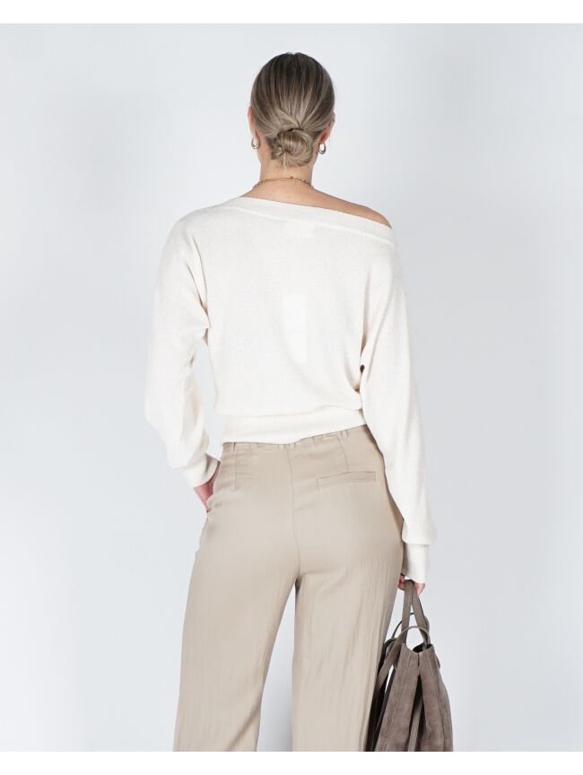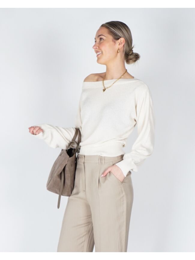 Deze trui is gemaakt van een zachte badstofachtige brei en heeft een normale pasvorm. Het ontwerp is voorzien van vleermuismouwen, een brede boothals en een ribboord aan de zoom en mouwen. De structuur geeft een nonchalante, comfortabele uitstraling. Perfect voor een relaxte, stijlvolle look.