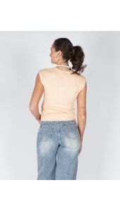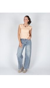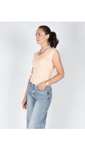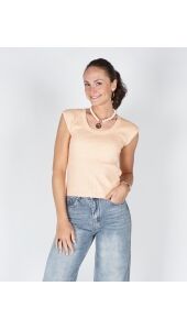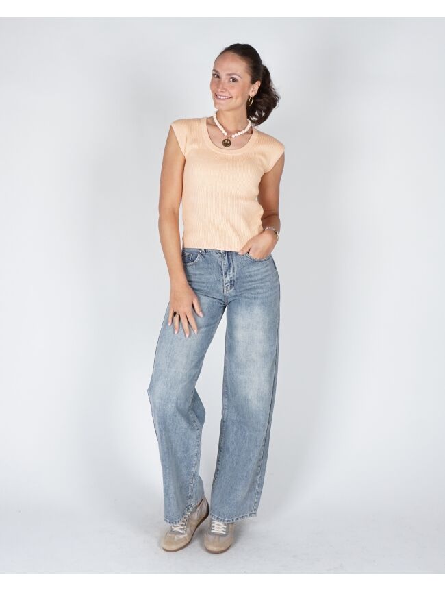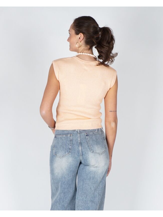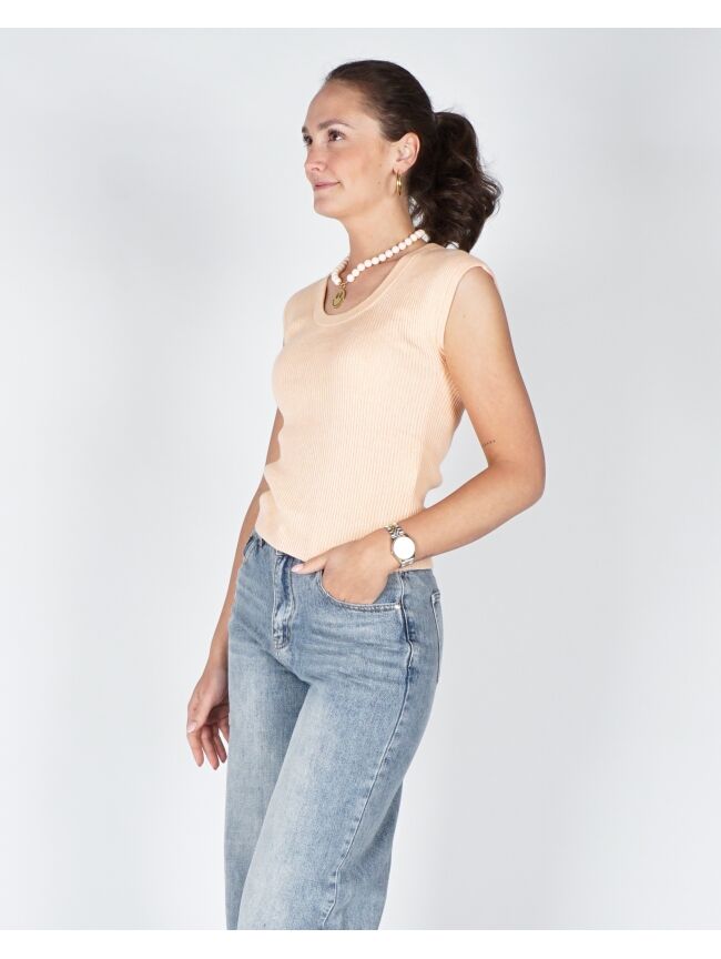 RIBGEBREIDE TOP MET DIEPE RONDE HALS PEACH