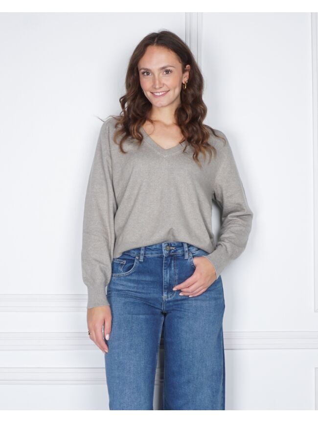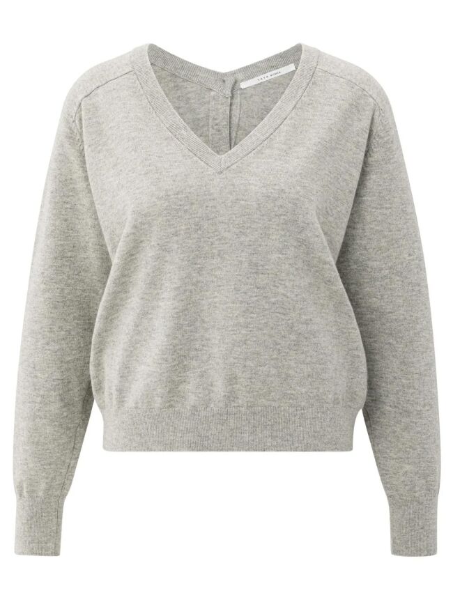 TRUI MET V-HALS EN KNOOPDETAIL GRIJS
