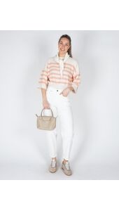 GEBREIDE SWEATER MET STREPEN ECRU/PEACH
