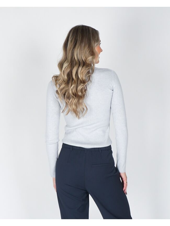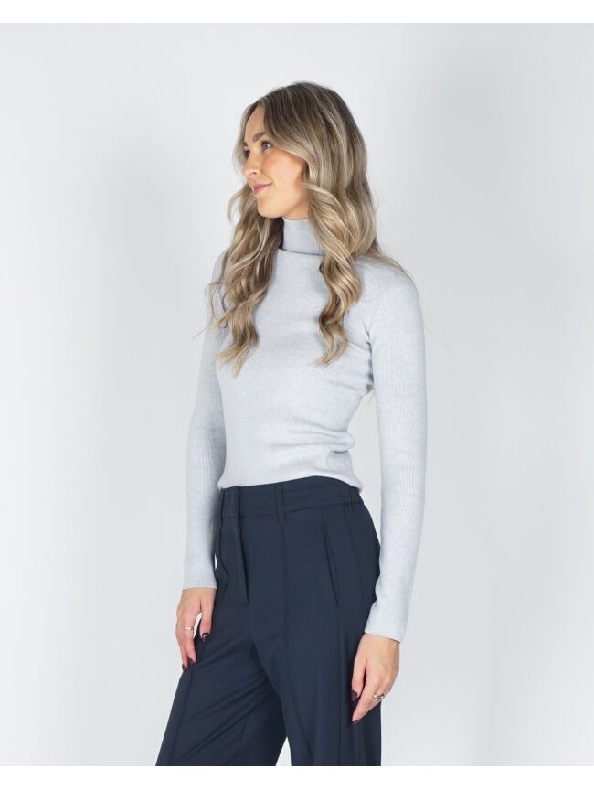 Deze stijlvolle top is gemaakt van geribd materiaal en sluit mooi aan voor een flatterende pasvorm. De col zorgt voor extra warmte en een elegante uitstraling, perfect om solo te dragen of te combineren onder een jas of vest. Een tijdloze basic die niet mag ontbreken in je garderobe