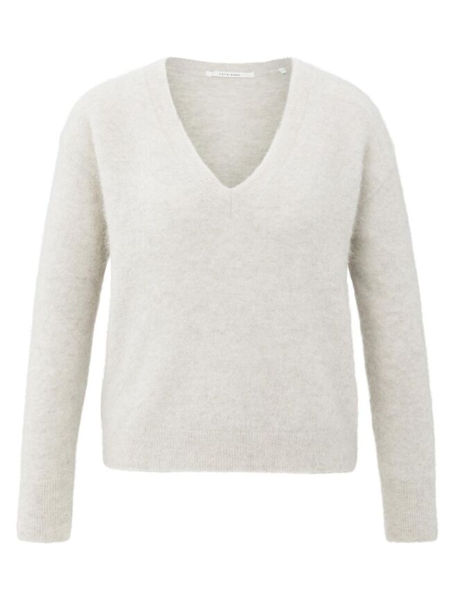 Deze trui van fijne wolmix voelt heerlijk zacht aan en heeft een tijdloze, rechte pasvorm. De V-hals en subtiele afwerkingen geven een verfijnde, vrouwelijke uitstraling. Perfect om moeiteloos stijl en comfort te combineren.