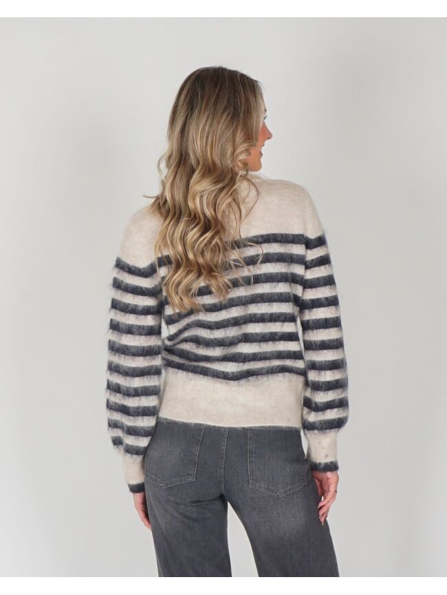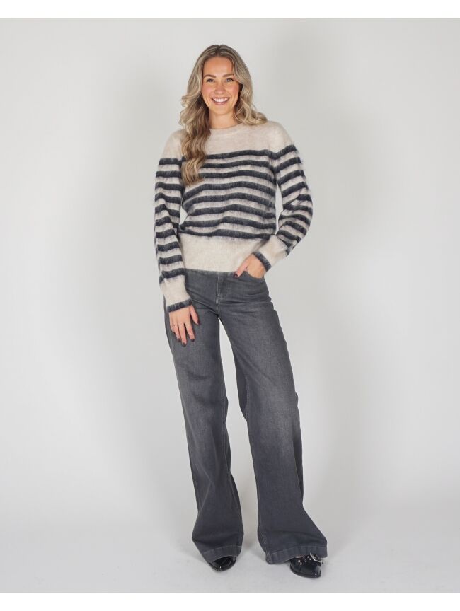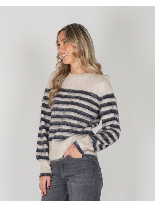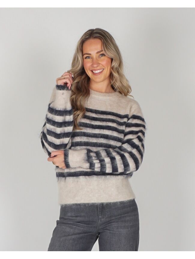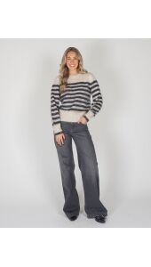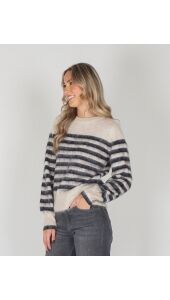 Trendy gestreepte trui met een comfortabele ronde hals en lange mouwen. Deze frisse en veelzijdige trui is perfect om je dagelijkse look mee af te maken, zowel casual als iets netter.