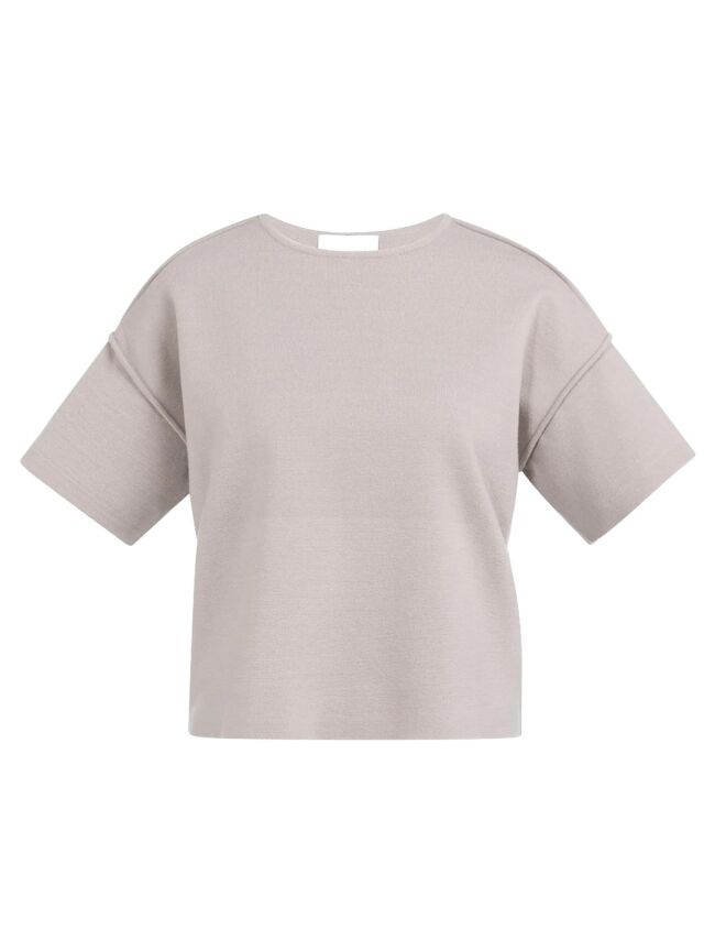 Deze comfortabele sweater is gemaakt van een stevige katoenmix en heeft korte mouwen, een ronde hals en een losse pasvorm. De verlaagde schoudernaden en zichtbare stiksels zorgen voor een moderne, minimalistische look. De zachte stof voelt prettig aan en maakt dit item ideaal voor een casual en stijlvolle outfit.