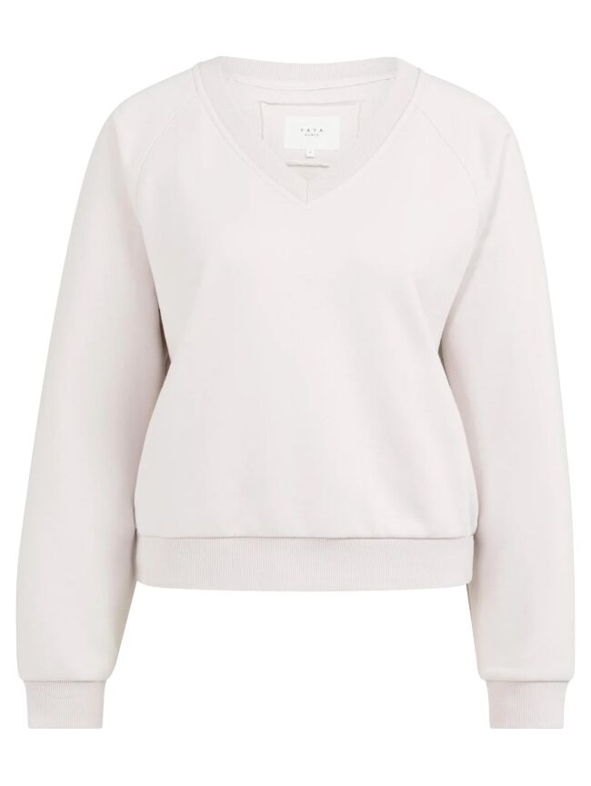 Deze comfortabele sweater is gemaakt van zachte sweatstof en heeft een flatterende V-hals, lange raglanmouwen en geribde boorden. De oversized pasvorm zorgt voor een stijlvolle en casual uitstraling. Een ideaal item om te combineren met zowel jeans als een rok.