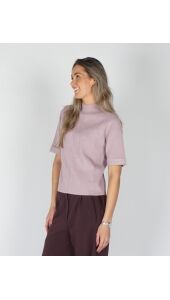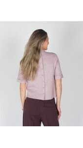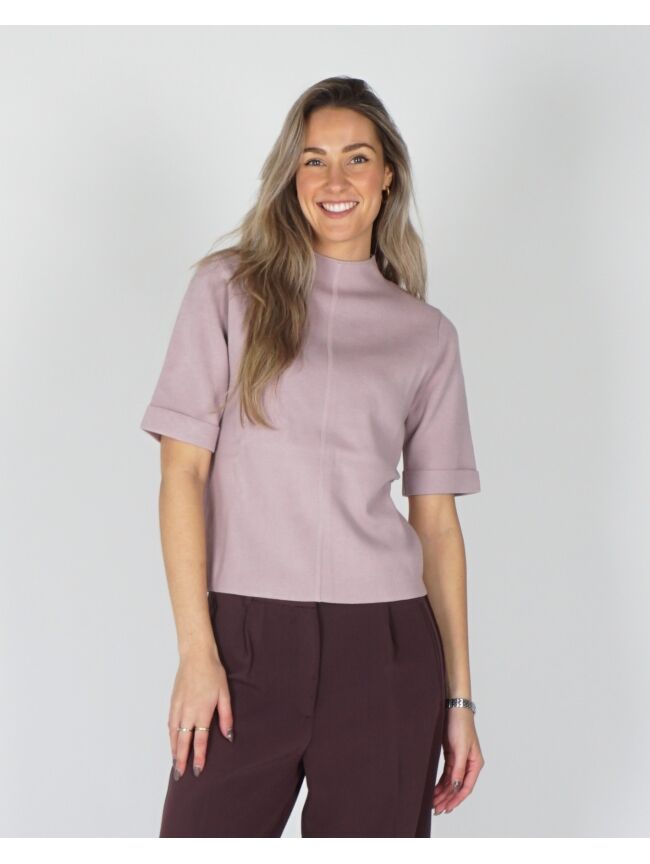 Deze fijngebreide trui combineert minimalistische elegantie met verfijnde details. De opstaande hals, halve mouwen met omslag en rechte pasvorm zorgen voor een tijdloze look, terwijl de knoopsluiting op de rug een subtiel, chic accent toevoegt. Ideaal voor zowel casual als nette outfits.