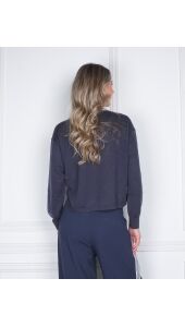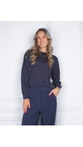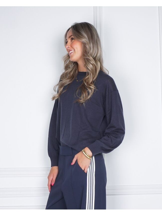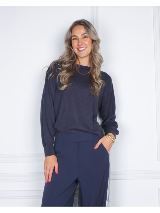 GEBREIDE TRUI MET TEXTUUR DONKER BLAUW