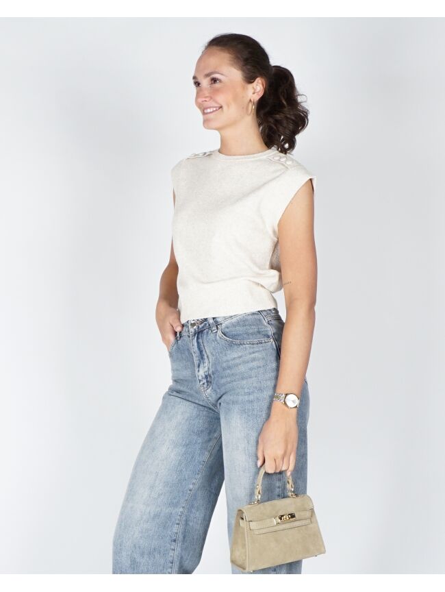 MOUWLOZE TRUI MET KNOOPDETAILS BEIGE