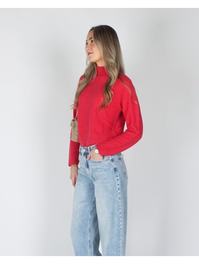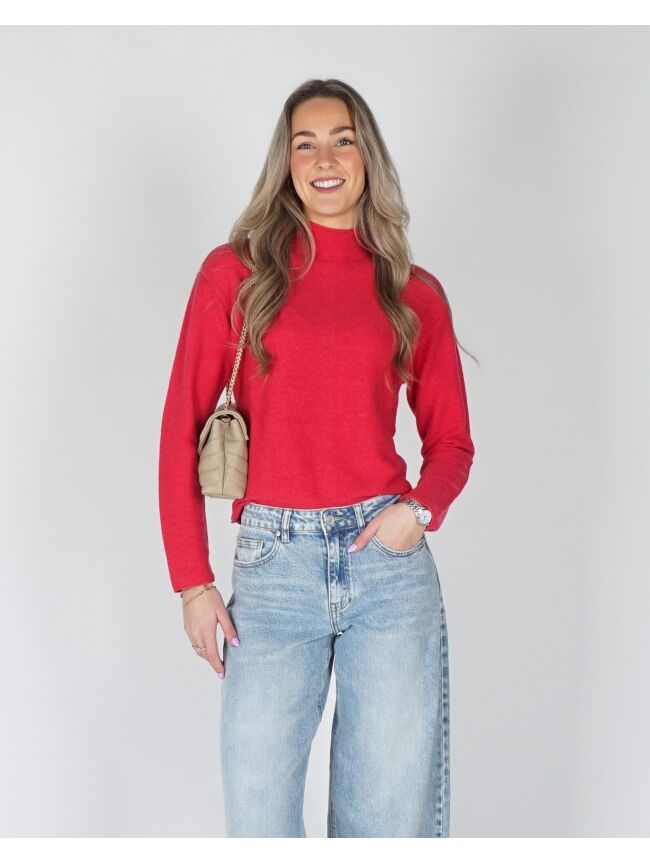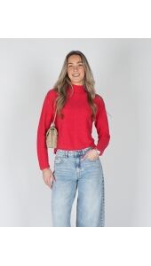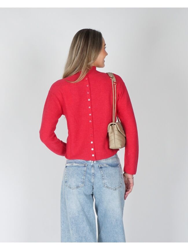 Deze trui is gemaakt van een zachte, gestructureerde brei en heeft een normale pasvorm. Het model is voorzien van een opstaande hals, lange mouwen en een elegante knoopsluiting op de rug. De rijke textuur en verfijnde afwerking maken dit een stijlvol item voor een vrouwelijke, casual look.