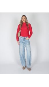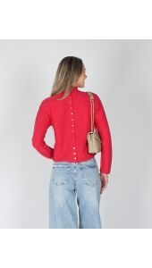 GEBREIDE TRUI MET KNOOPJES ROZE