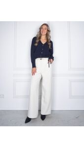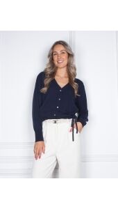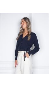 Dit fijne vest is gemaakt van een zachte gebreide stof en is afgewerkt met een diepe V-hals, knoopsluiting en een elegant strikdetail in de taille. De lange mouwen en ribboorden zorgen voor een comfortabele, normale pasvorm. Een veelzijdig item dat je zowel casual als gekleed kan dragen